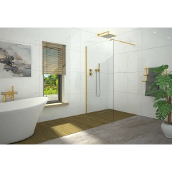 Ścianka prysznicowa walk-in 120×195 cm SP55 COLIMA od SEVANTE to elegancka i nowoczesna propozycja do przestronnych łazienek. Przezroczyste, hartowane szkło w połączeniu ze złotym wykończeniem profili aluminiowych nadaje całości lekki, a zarazem luksusowy charakter, doskonale wpisując się w aktualne trendy wnętrzarskie.