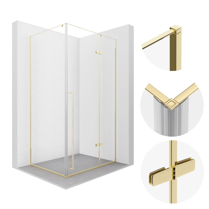 Kabina prysznicowa prostokątna 100×80 cm KB249 ILEX od SEVANTE to nowoczesne i stylowe rozwiązanie, które wnosi do łazienki elegancję oraz komfort użytkowania. Transparentne, hartowane szkło w zestawieniu ze złotymi profilami aluminiowymi podkreśla luksusowy charakter wnętrza, idealny do współczesnych aranżacji.