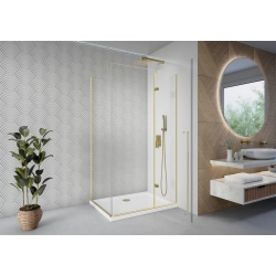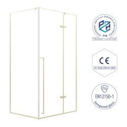 Kabina prysznicowa prostokątna 120×90 cm KB249 ILEX od SEVANTE to stylowa i komfortowa propozycja, która wnosi nowoczesny charakter do każdej łazienki. Transparentne, hartowane szkło w połączeniu ze złotymi profilami aluminiowymi podkreśla elegancki wygląd, tworząc harmonijną i luksusową strefę prysznicową.