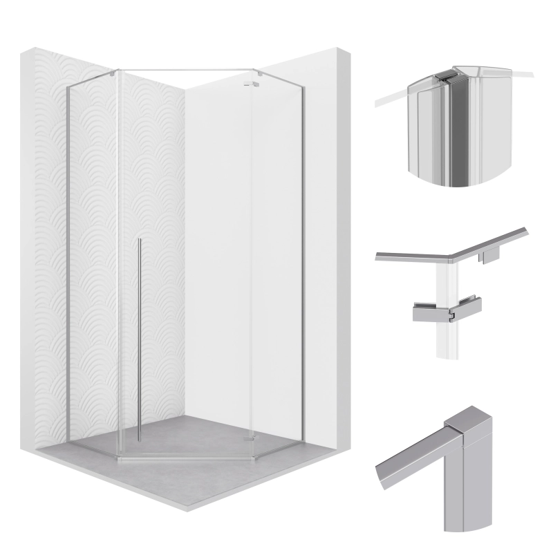 Kabina prysznicowa pięciokątna 100×100 cm KB126 CAPRI od SEVANTE to designerskie i funkcjonalne rozwiązanie, które wprowadzi nowoczesny charakter do każdej łazienki. Połączenie przezroczystego, hartowanego szkła z chromowanymi profilami aluminiowymi nadaje kabinie elegancki i stylowy wygląd, idealny do współczesnych wnętrz.