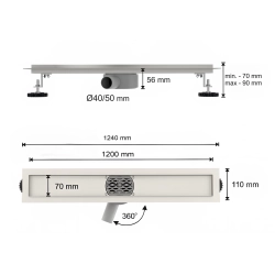 Korpus odpływu liniowego OL030 FLAT SEVANTE to praktyczne odwodnienie prysznicowe, które łączy estetykę z doskonałą funkcjonalnością. Dzięki obrotowemu syfonowi możliwe jest precyzyjne dopasowanie odpływu do istniejącej instalacji kanalizacyjnej, co znacznie ułatwia montaż. Regulowane nóżki gwarantują stabilne i równe ustawienie, a szerokość rynny 7 cm tworzy minimalistyczny efekt, zachowując jednocześnie wysoką wydajność odprowadzania wody - do 50 l/min.