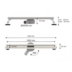 Odpływ liniowy obrotowy 100 cm inox OL043 SLIM SEVANTE