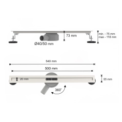 Odpływ liniowy obrotowy 50 cm inox OL052 ULTRA SLIM SEVANTE