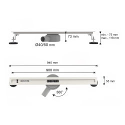 Odpływ liniowy obrotowy 90 cm inox OL056 ULTRA SLIM SEVANTE