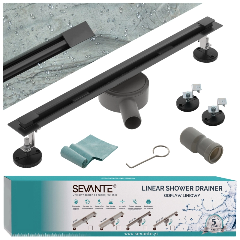 Odpływ liniowy obrotowy 80 cm czarny OL062 ULTRA SLIM SEVANTE