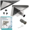 Konstrukcja trójkątna umożliwia łatwe odprowadzenie wody w kierunku kąta pomieszczenia, co ułatwia wykonanie odpowiedniego spadku podłogi i optymalizuje przestrzeń natryskową. To rozwiązanie szczególnie polecane w mniejszych łazienkach oraz tam, gdzie klasyczne odwodnienia liniowe mogą być niewygodne w montażu.