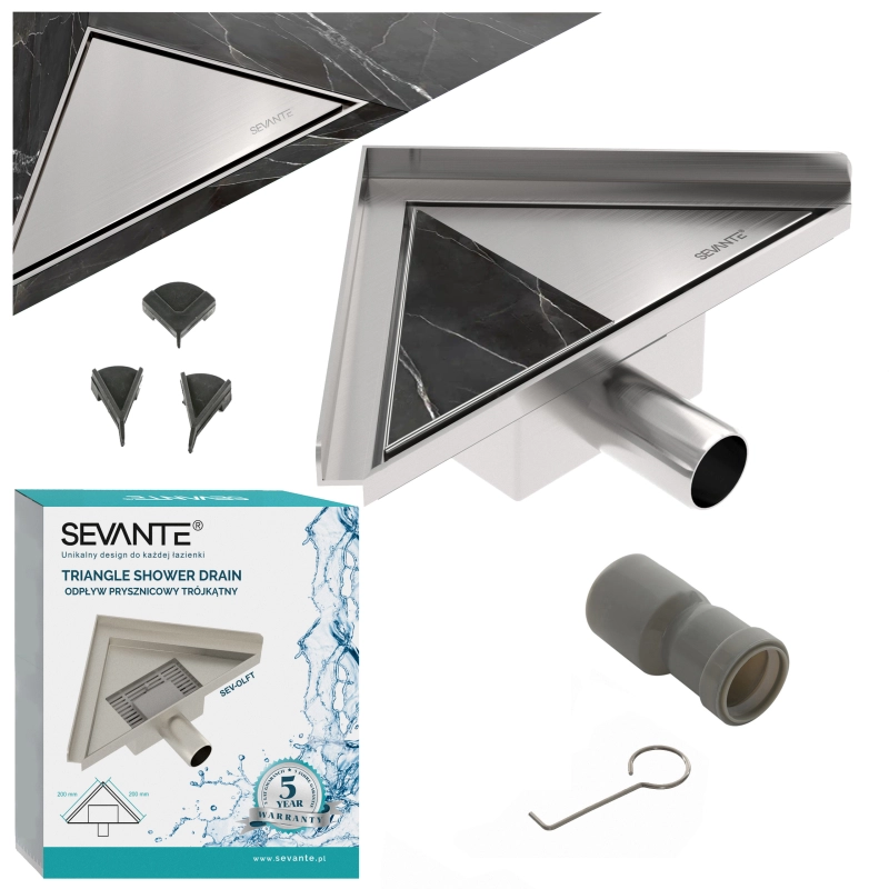 Odpływ narożny trójkątny 20 cm inox OL083 FLAT SEVANTE