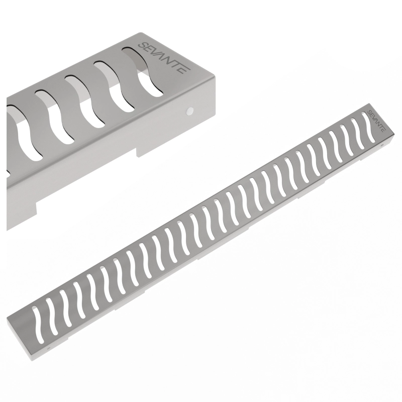 Maskownica WK146 do odpływu liniowego SEVANTE to estetyczne i funkcjonalne wykończenie strefy prysznicowej, które pozwala dopasować wygląd odpływu do aranżacji łazienki. Minimalistyczna forma i modny kolor inox sprawiają, że maskownica dyskretnie komponuje się z podłogą lub ścianą, podkreślając nowoczesny charakter wnętrza.
